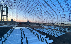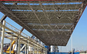 球形網(wǎng)架施工方案 1、工程概況和總體部署 網(wǎng)架采用正放四角錐形式,采用螺栓球接點,采用普通鋼管材,采用兩側(cè)焊接水平支座...